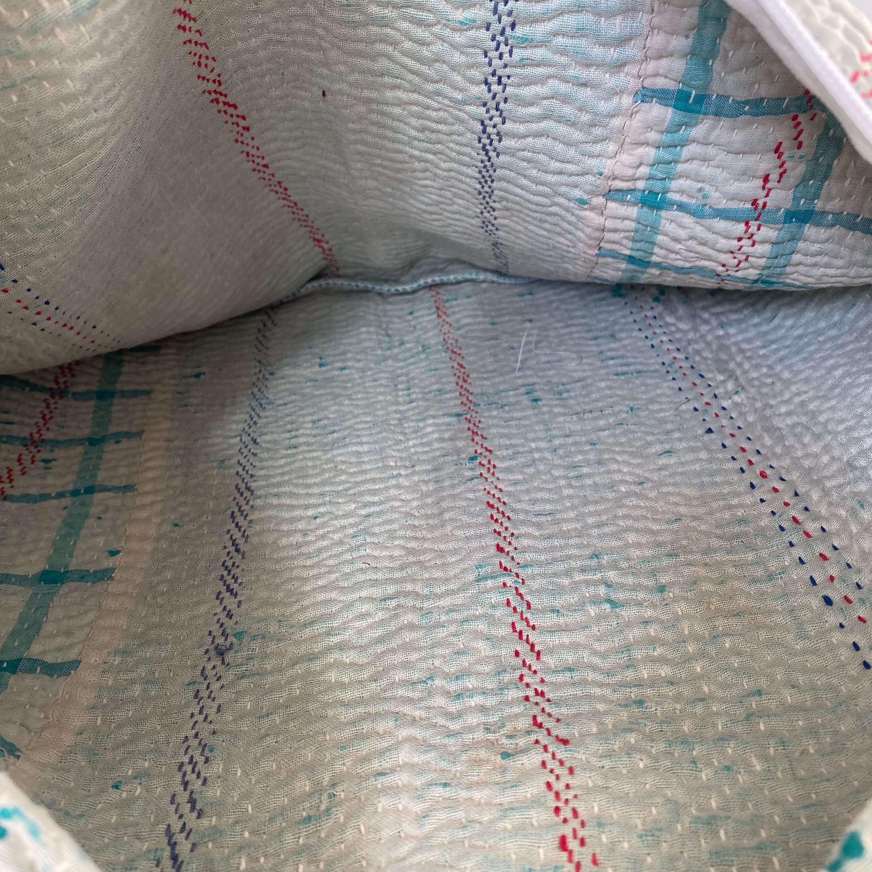 刺し子が施されたパッチワーク布地が、風合いがあってとても可愛いです。