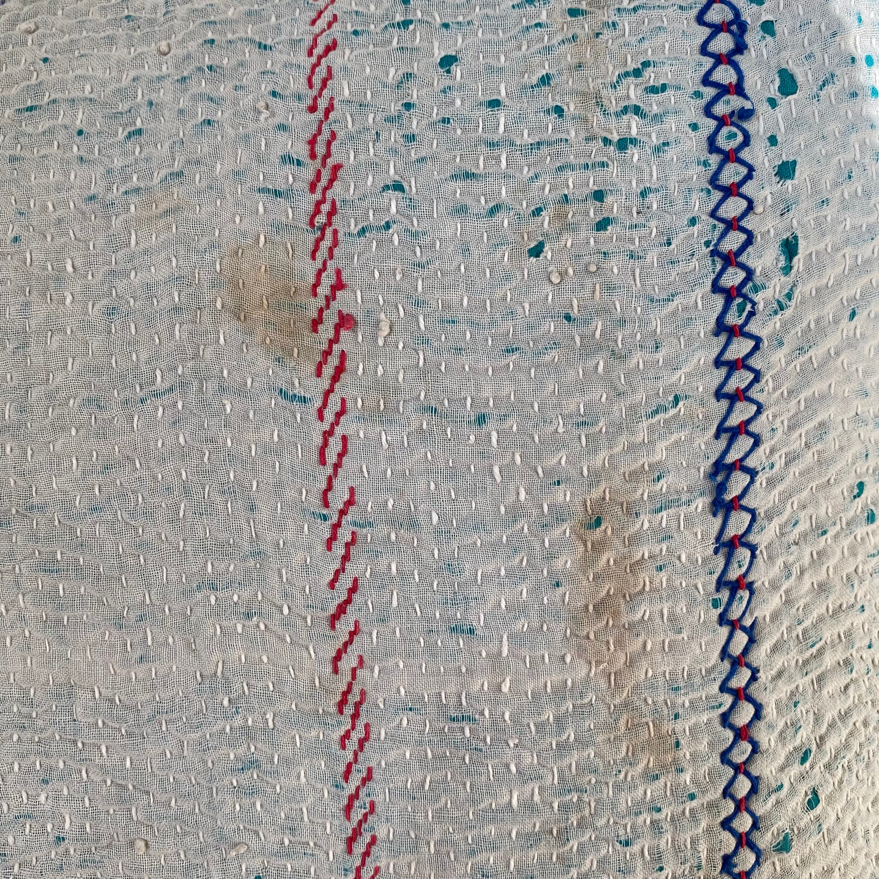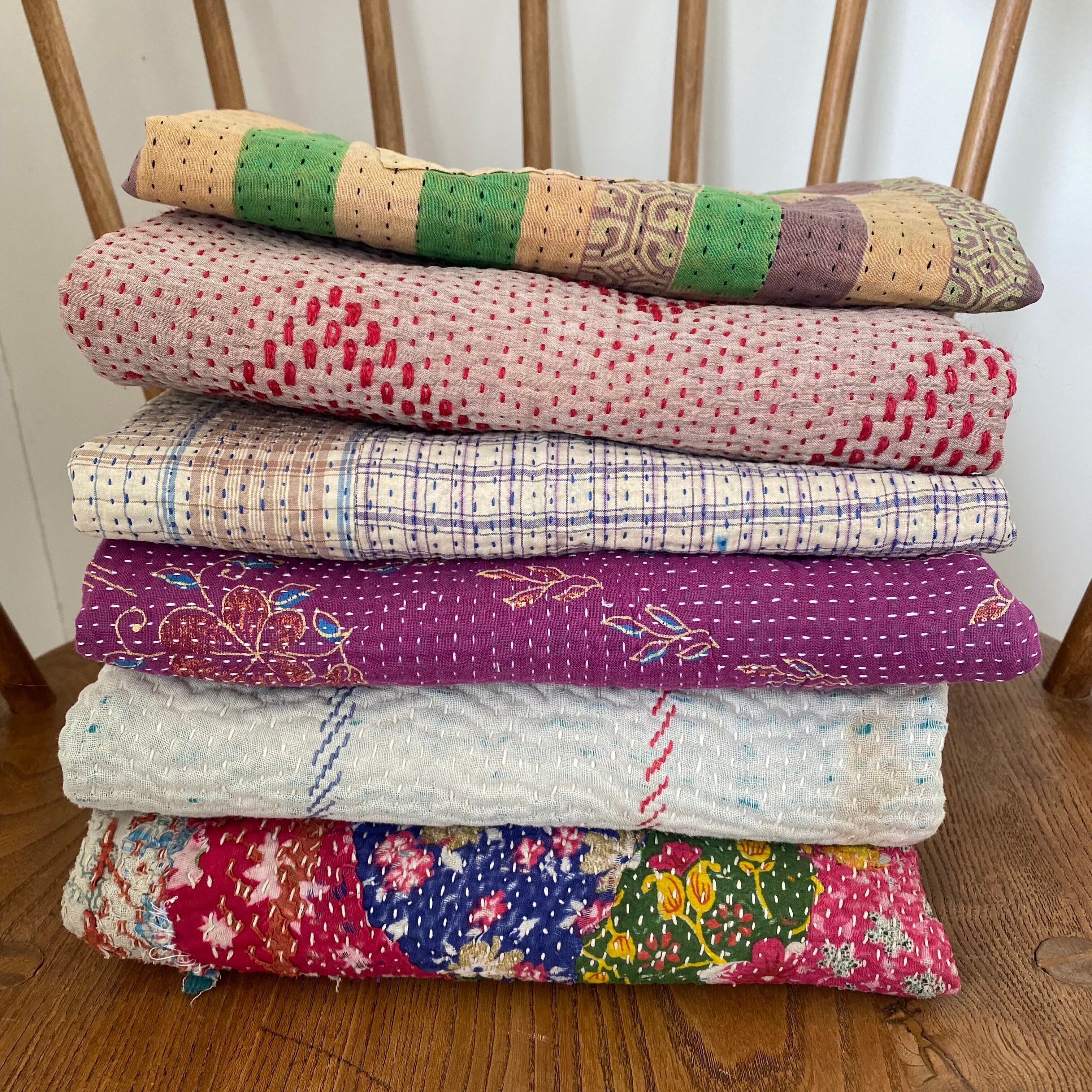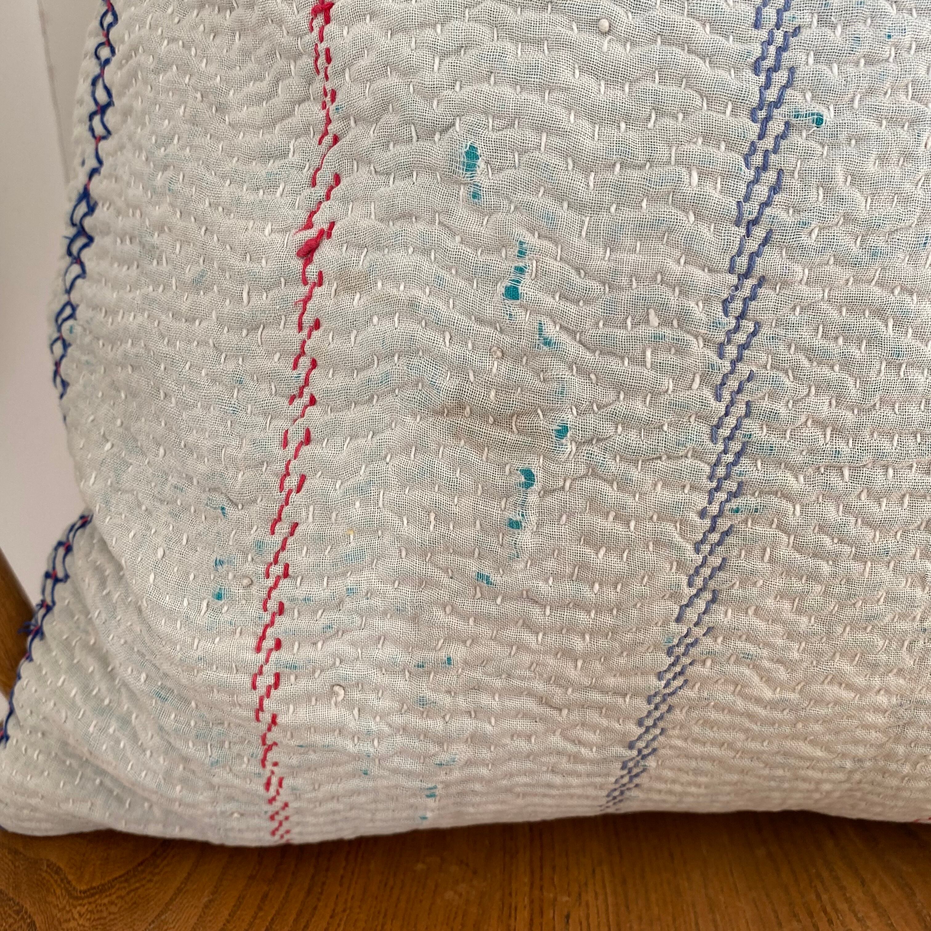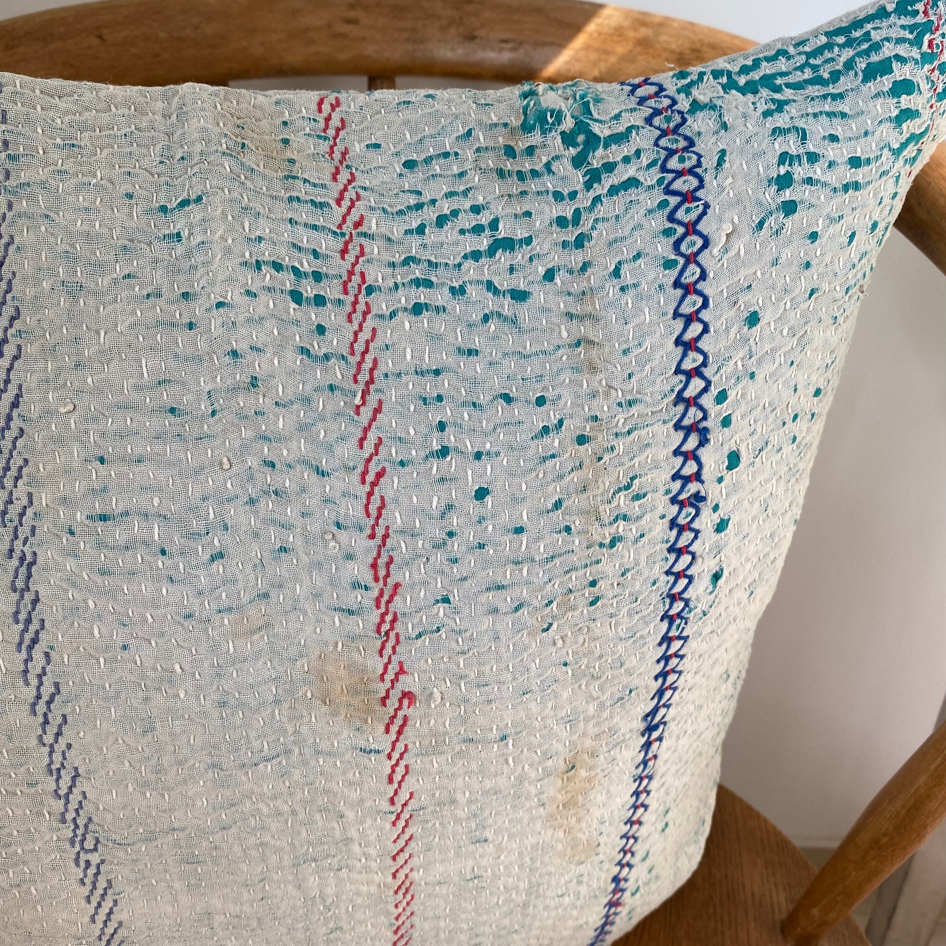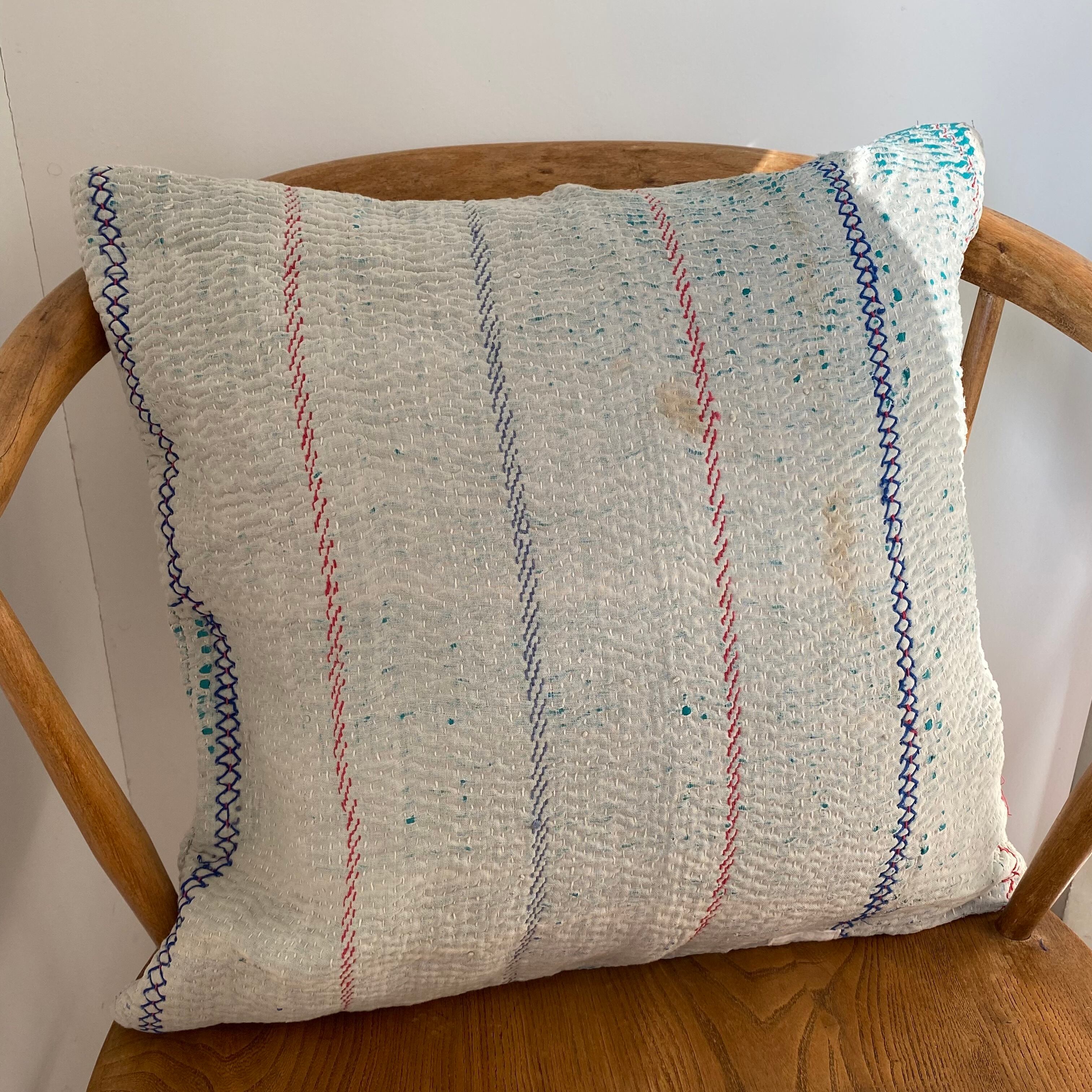 こちらはビンテージのカンタキルトをリメイクしてクッションカバーにした物ですので、シミやダメージ、使用感のある物となっております。