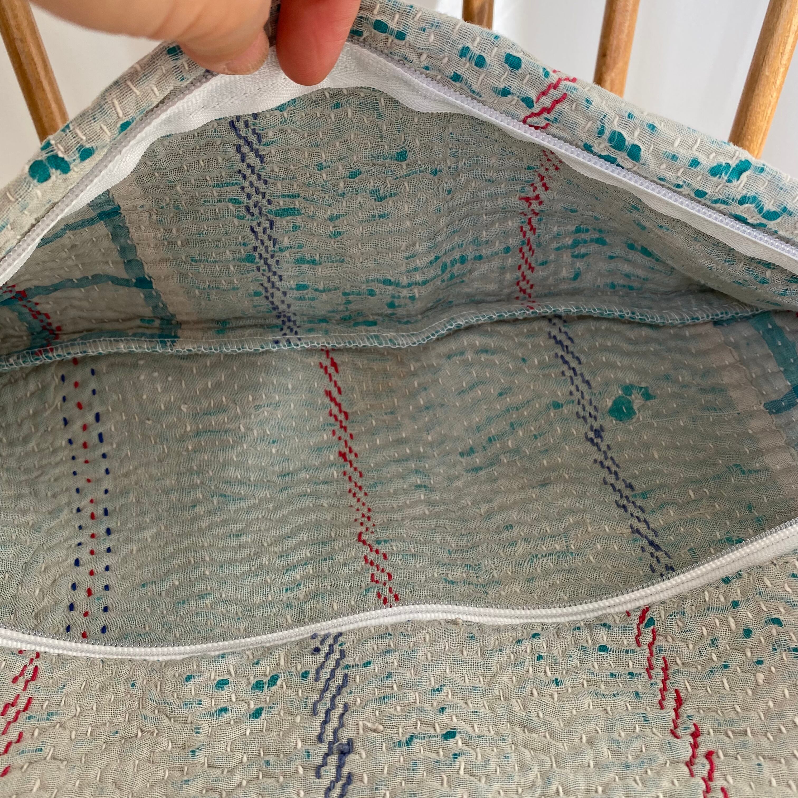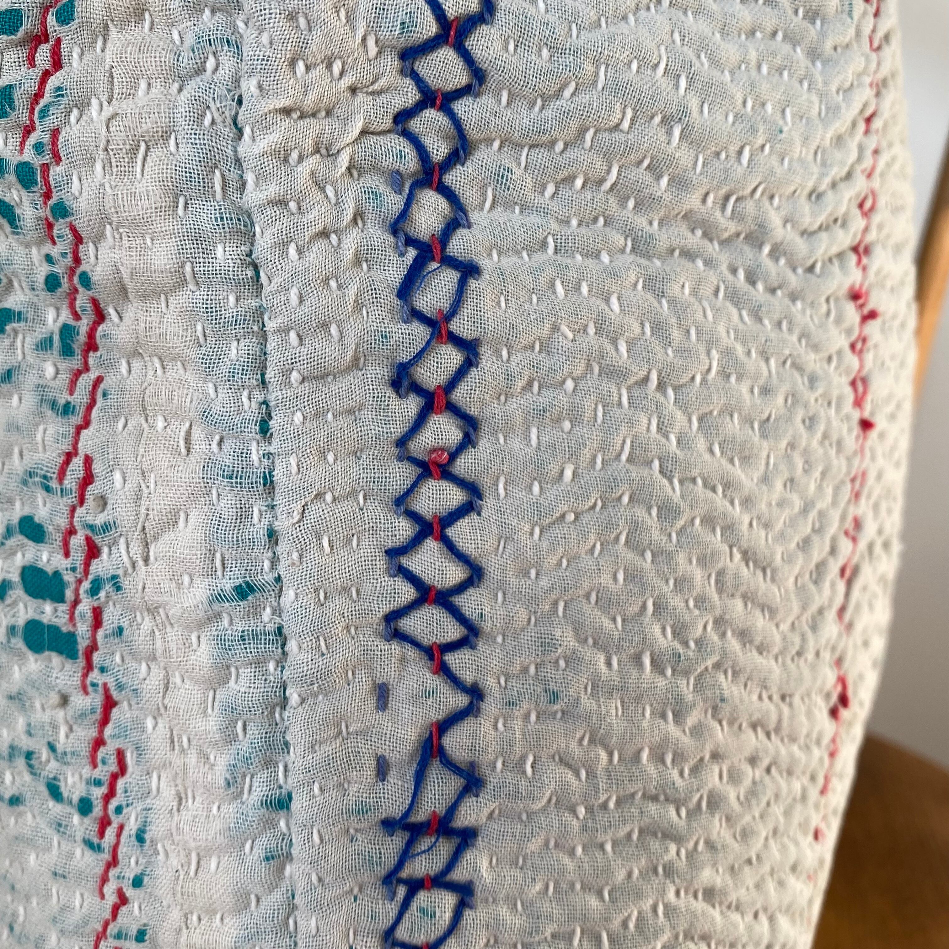 ビンテージのカンタラリーキルトからリメイクされたクッションカバーです。