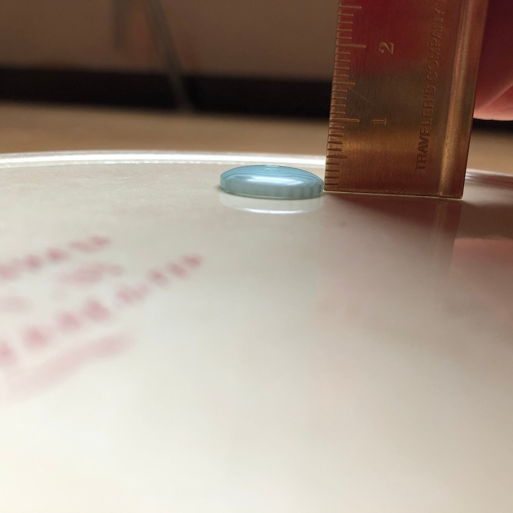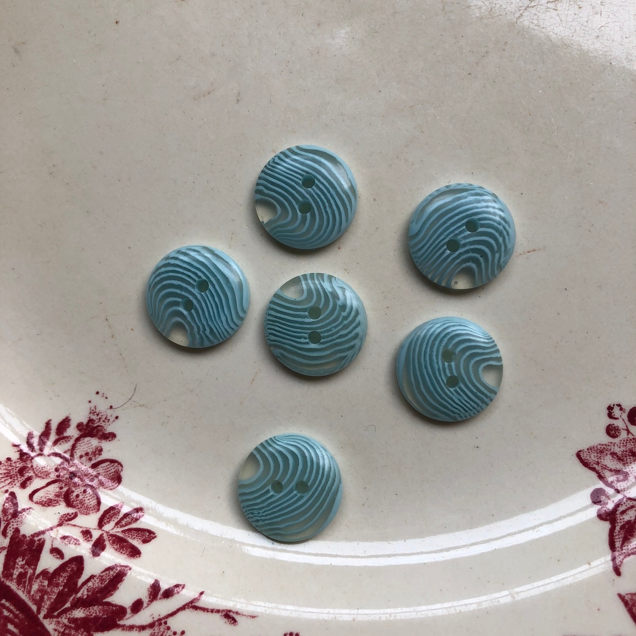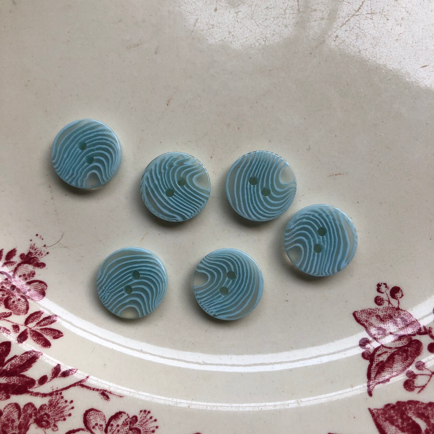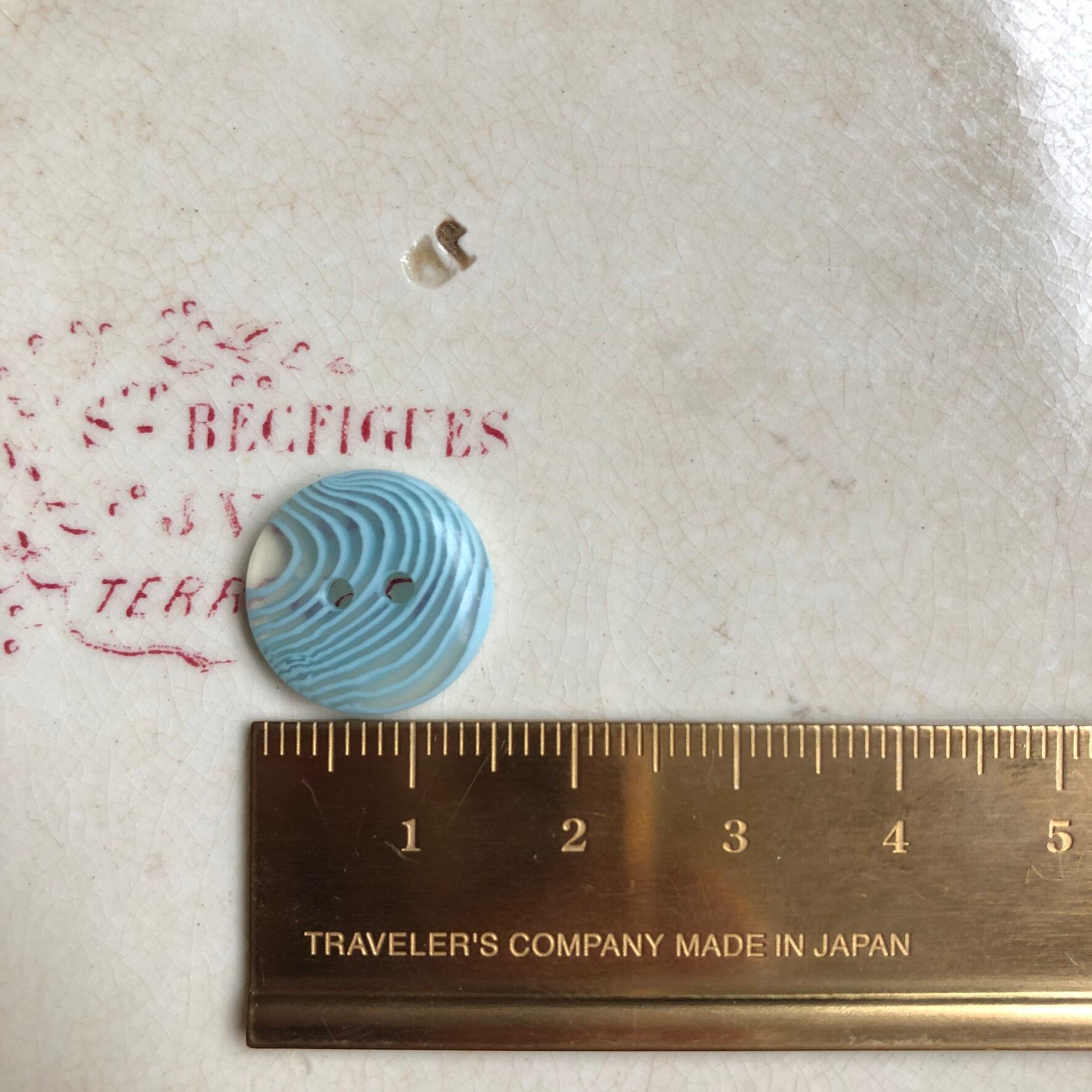 クリアのボタンに水色の波模様が入ったビンテージボタン。
