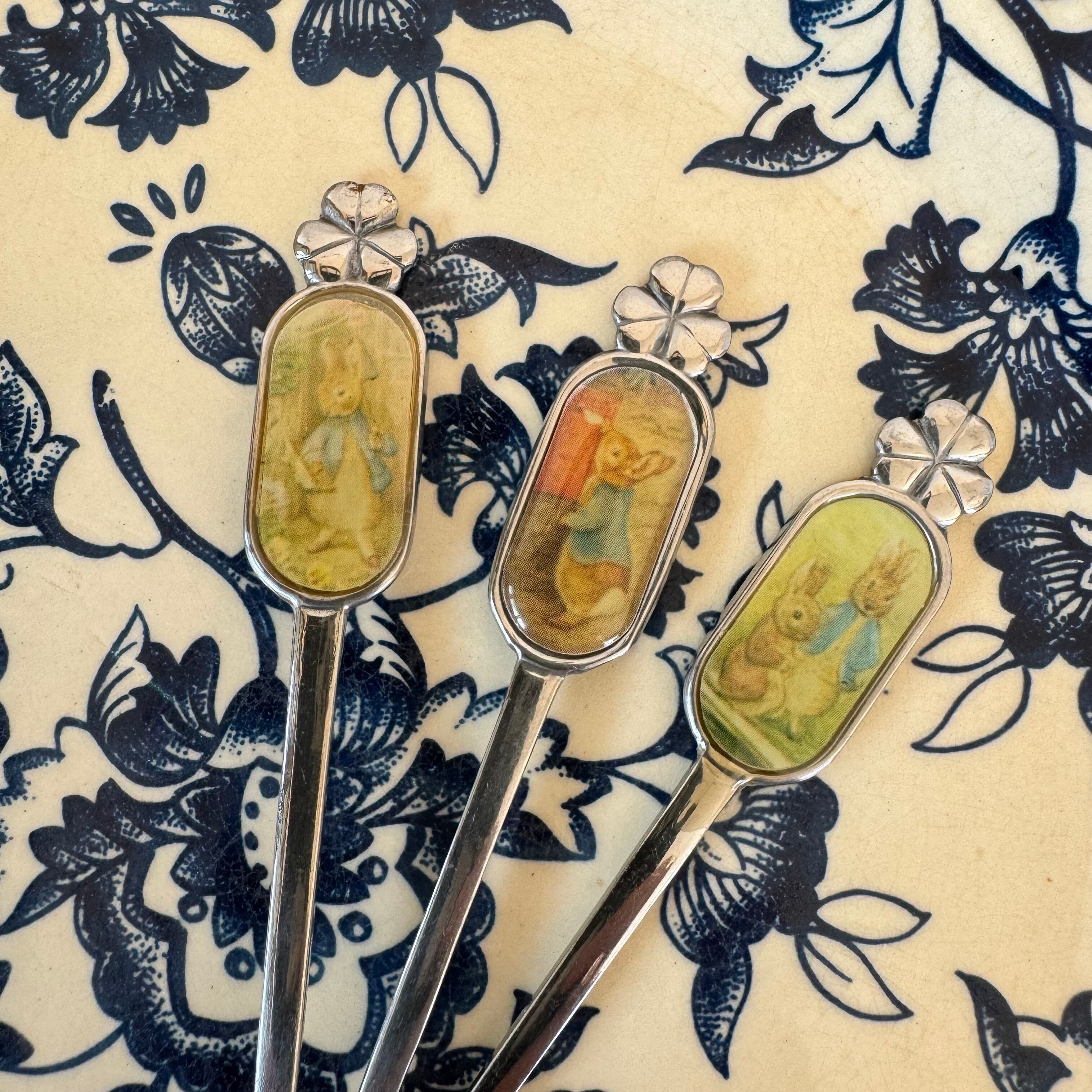 頭にクローバーがついた、ピーターラビットのスプーン3本セットです。